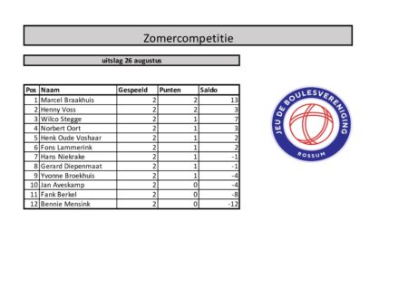 uitslag 26 augustus